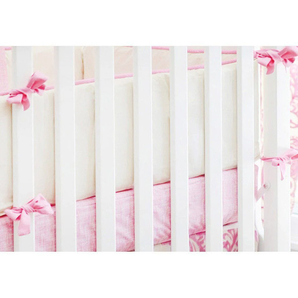 Our Aqua & White Crib Bumper is made of White Pique fabric with Aqua Solid Ribbon ties, Bahama Blue cording, and is slip covered for easy cleaning.